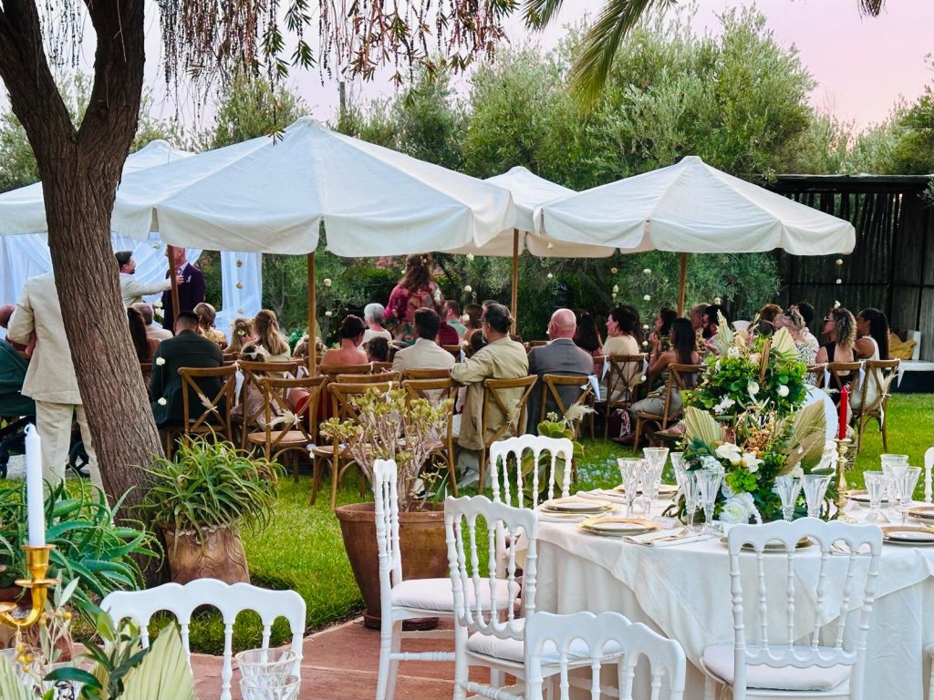 Célébrez votre union dans une atmosphère magique. Entre jardins luxuriants, terrasses panoramiques et vues majestueuses sur l’Atlas, nos villas offrent un décor féerique pour un mariage intime, élégant et hors du temps.